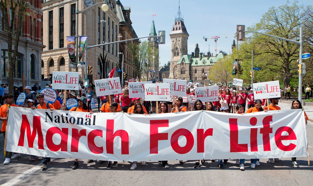 Young people carry the banner of Canada’s National March for Life through Ottawa on May 11. Photo by Jake Wright