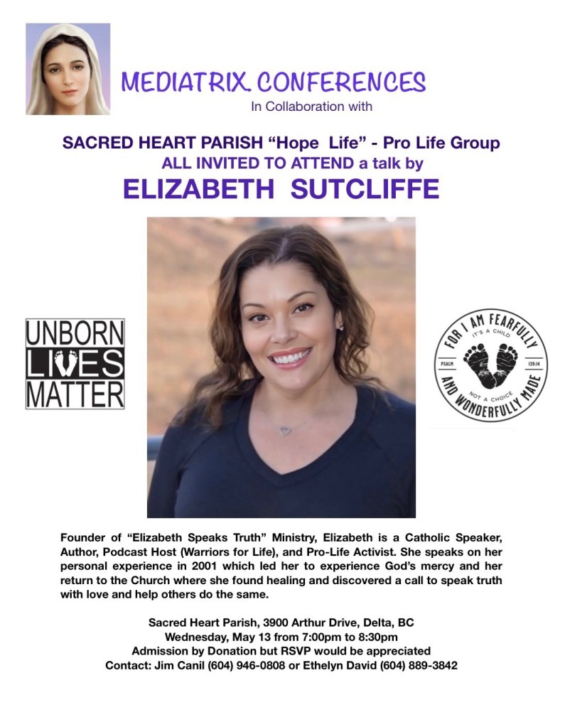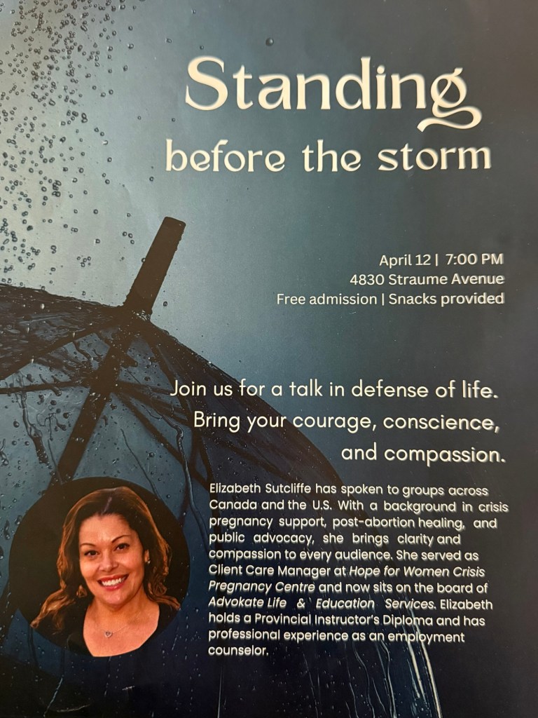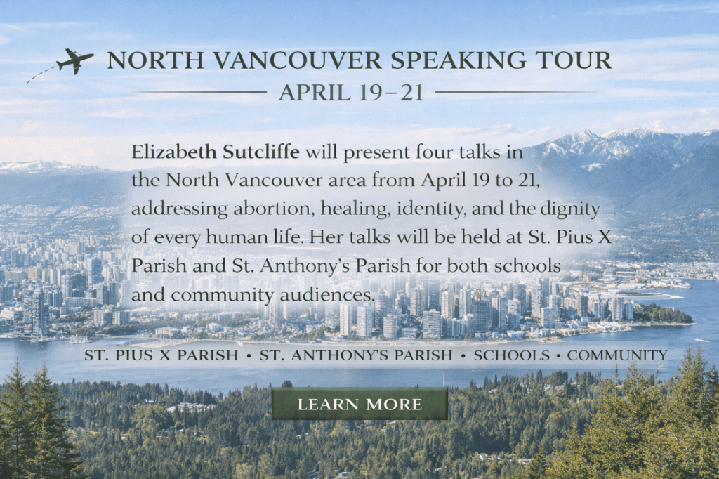 From silence to strength—Elizabeth Sutcliffe speaks across Canada and the U.S., sharing her powerful testimony of post-abortion healing, hope, and the transforming mercy of God. Her talks invite audiences to confront the hard truths of abortion with compassion, courage, and faith.